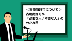 ただし、事業として中古品の売買を行う場合は、個人や法人にかかわらず「古物商許可証」が必要です。